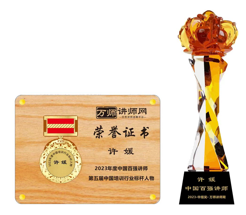 恭喜許媛老師榮獲萬師講師網2023年度中國百強講師 暨第五屆中國培訓行業標桿人物