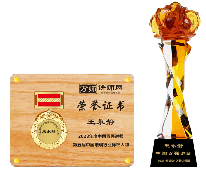 恭喜王永靜老師榮獲萬師講師網2023年度中國百強講師 暨第五屆中國培訓行業標桿人物