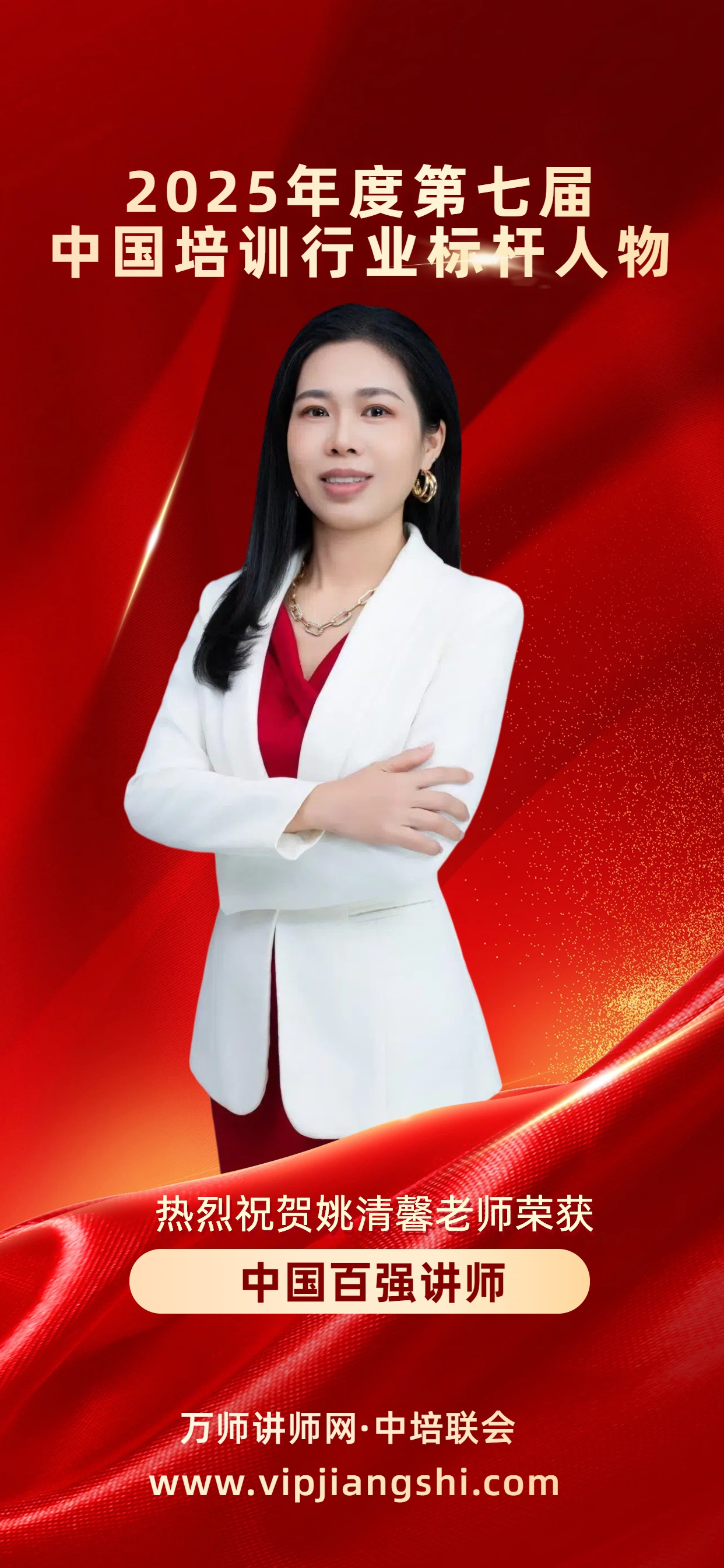 恭喜姚清馨老師獲萬師講師網2025年度中國百強講師暨第七屆中國培訓行業標桿人物
