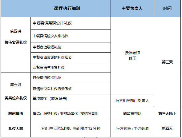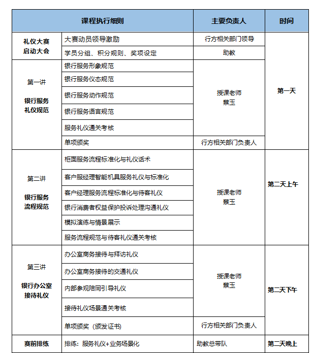 蔡玉老師銀行禮儀大賽輔導課程安排如下: