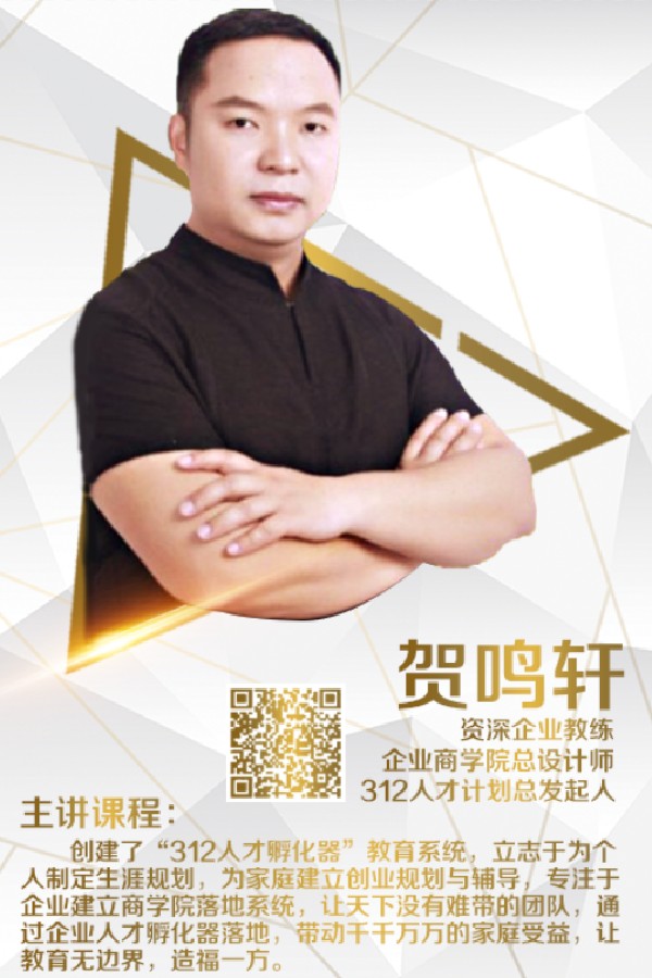 賀鳴軒青年演講家, 資深企業(yè)教練, 企業(yè)商學(xué)院總設(shè)計師, 312人才計劃總發(fā)起人